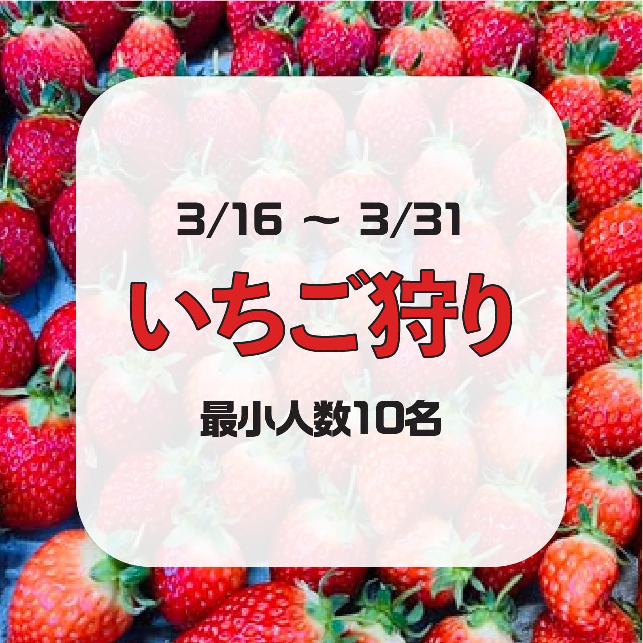 【3/16~3/31】いちご狩り11時-15時(1回30分・10名以上より受付)